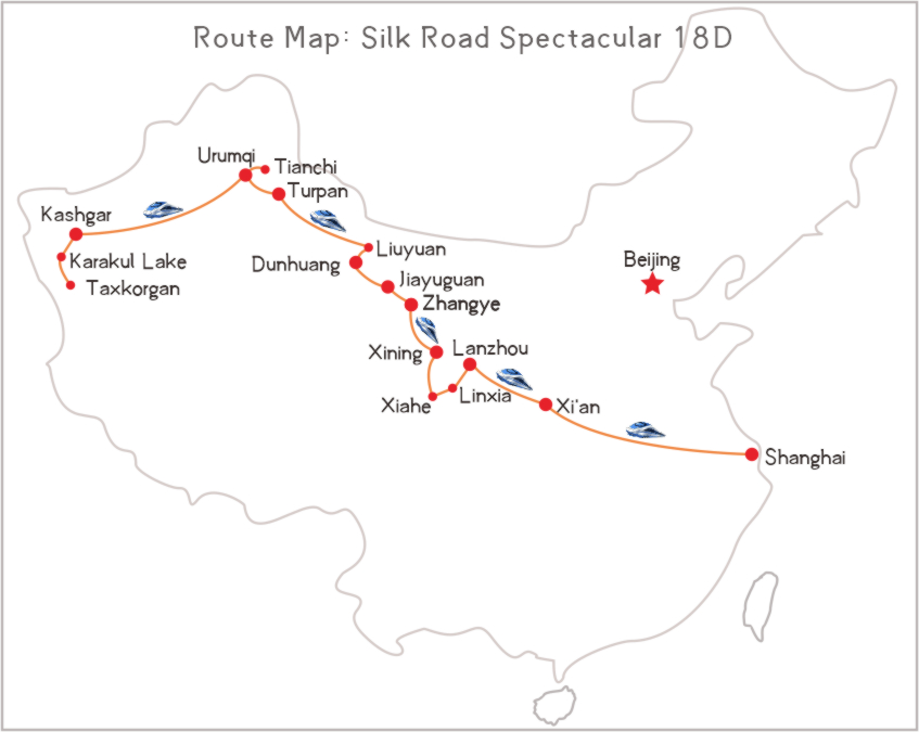 Travel from modern Shanghai to old Kashgar, enjoying the contrast between the developed rich cities to the developing countryside. This is a long tour to view the desert, the mountains, temples, and camels etc. along the ancient Silk Road in China.