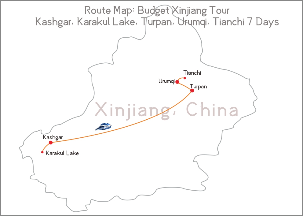 Xinjiang is the biggest province in China with its spectacular history and landscape attracting travelers to explore. This is a 7-day budge tour to travel from Kashgar to Karakul Lake, Turpan, Urumqi, and Tianchi by overnight train and car in Xinjiang, China. You will enjoy the adventure on the splendid land on a budget way.
