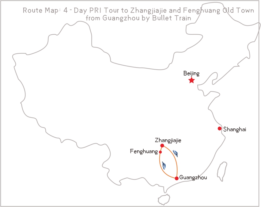 This 4-day tour will let you take bullet train from Guangzhou to visit the stunning Zhangjiajie(UNESCO world heritage) and old town of Fenghuang. You will climb up the picturesque Tianmen Gateway, Tianzi Mountain to view the prototype mountain of the movie AVATAR... etc. Local guide will meet you in Zhangjiajie, no escorted guide on the train.