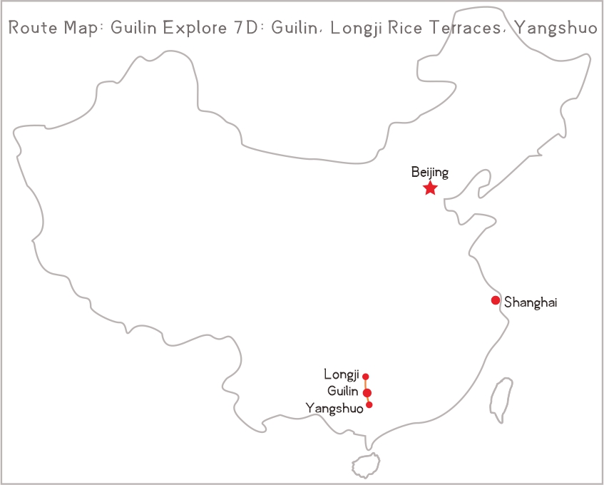 Guilin is a well-known travel destination in China with the picturesque Li River, karst mountains, rice paddies, and Yulong River. This tour will let you explore most popular area in Guilin including Guilin city, Longji Rice Terraces, and Yangshuo. You will visit the attractions with a local guide to learn the history and meet the local people.
