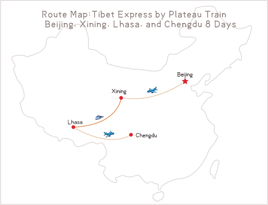 This tour will let you explore the amazing Qinghai and Tibet Plateau by the well-known plateau train from Xining to Lhasa. You will start from Beijing, then to Xining, Lhasa, and Chengdu, enjoying the fantastic view on the train running on the plateau.