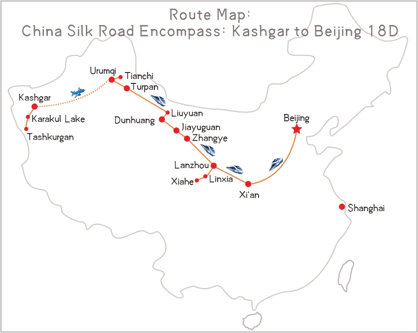 Silk Road or Silk Route used to be an important trading route between east and west in the history. Nowadays it becomes a historical tour route that offers great landscape, colorful cultures, and interesting history. This 18-day tour will let you explore all the must-see attractions from Kashgar to Beijing on the ancient Silk Road, to learn the profound history and enjoy the stunning scenery.