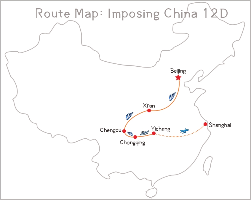 This tour starts from Beijing, then Xi’an, Chengdu, Three Gorges and Shanghai to explore Great Wall, Terra Cotta Warriors, Pandas, cruising on the Three Gorges of Yangtze River, and Shanghai Bund, which are the imposing sites of China. Note the cruise itinerary might be updated as per departure date cruise.