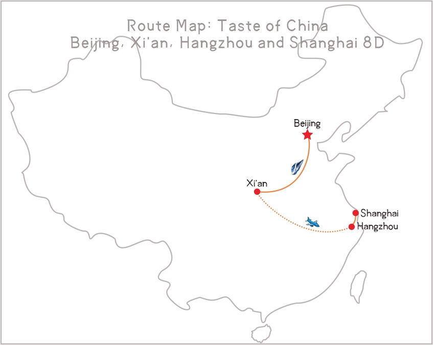 Taste of China from Beijing to Shanghai will offer you a change to have a quick view of the classic cities in China including Beijing, Xian and Shanghai to acquire the first hand experience.